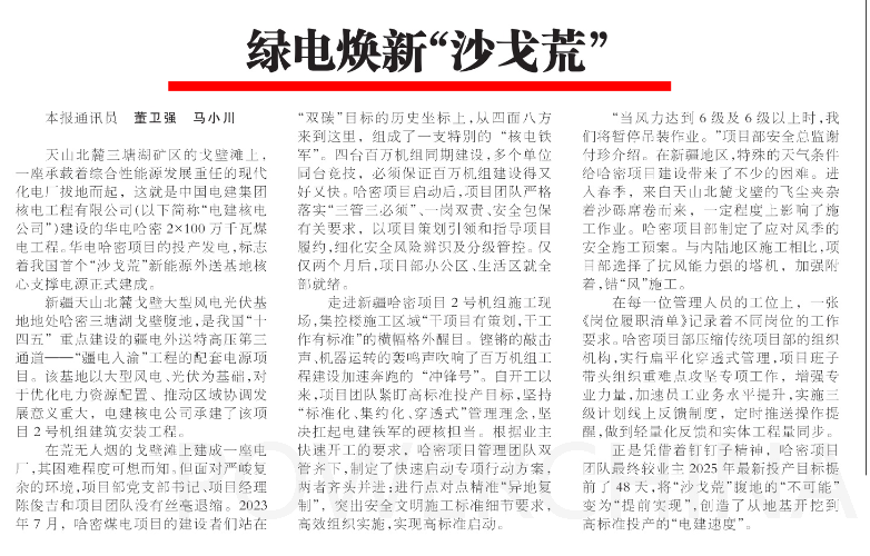 山东工人报:绿电焕新“沙戈荒”