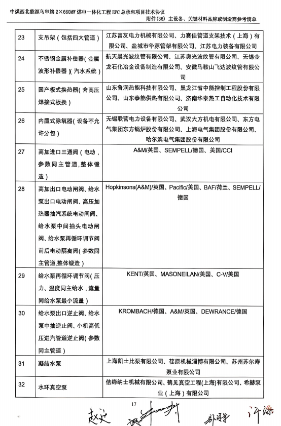 中煤西北能源乌审旗2*660万没点一体化工程设备短名单